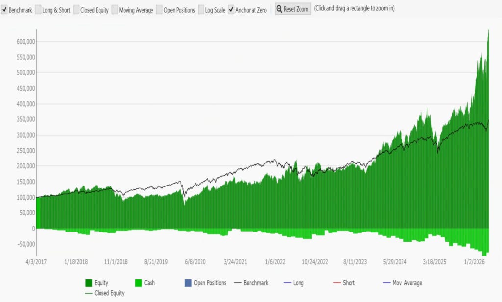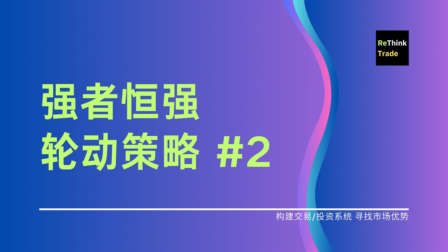 强者恒强策略 #2johnbensApr 21, 2026∙ PaidShare在上一篇内容「用一个简单的轮动策略打败指数?」中,我们讨论了如何用一个非常简单的轮动策略,来试图战胜指数。今天我们继续分享一个同样非常简单的轮动策略,该策略在过去 10 年的回测中获得了年化 22% 左右的收益。策略规则:Continue reading this post for free, courtesy of 重新思考.Claim my free postOr purchase a paid subscription.Previous