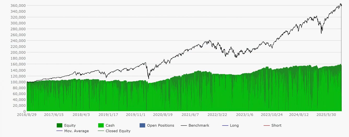 最大亏损幅度仍然劣势于买入持有 SPY。