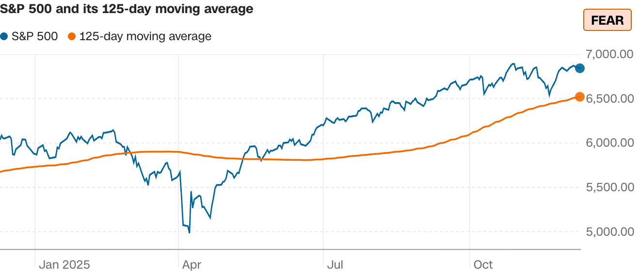 当标准普尔 500 指数高于其前 125 个交易日的移动平均值时,这是积极势头的标志。但如果该指数低于这一平均值,则表明投资者正在变得胆怯。