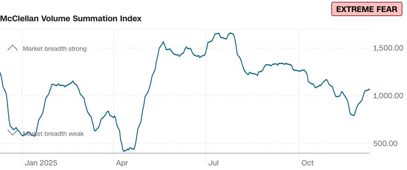 观察纽约证券交易所上涨的股票数量(或成交量)与下跌的股票数量之间的关系。恐惧与贪婪指数将交易量下降作为恐惧的信号。