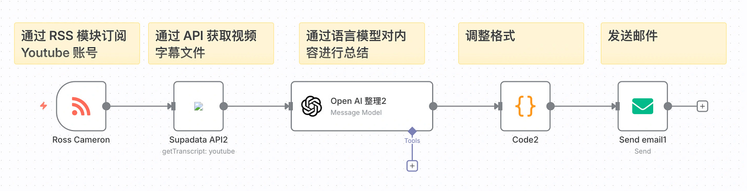 我们可以通过搭建 n8n 工作流实现追踪 youtube 博主,并自动获取最新内容,提取核心思想,并推送到邮箱。demo 邮件如下: