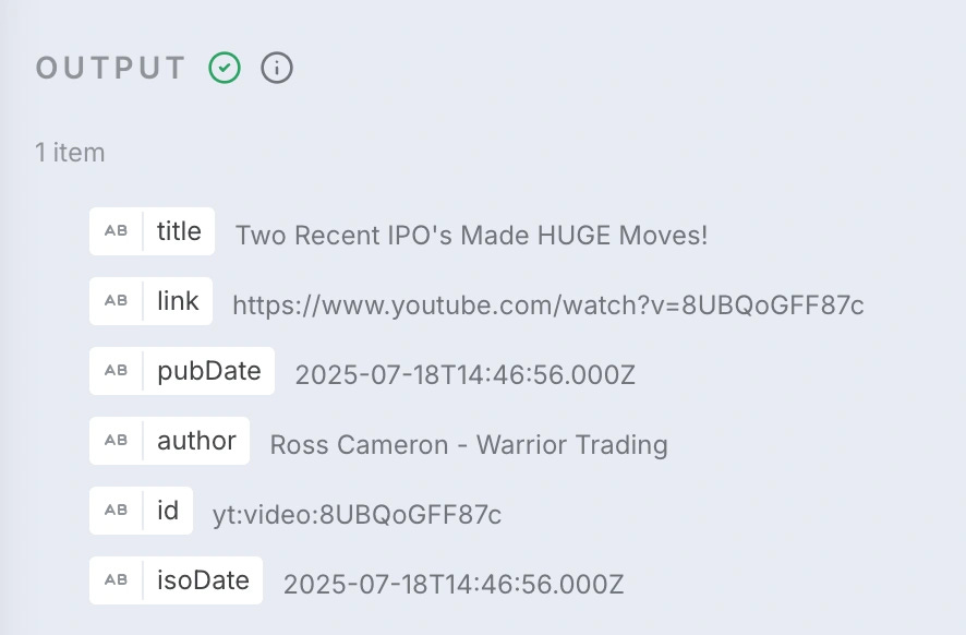 RSS Feed Trigger 更符合我们的需求,把它添加到画布,将链接添加进去即可。Youtube 频道订阅链接是:
