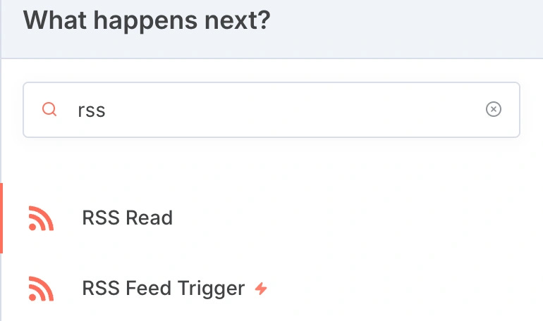 我们进入 n8n 面板之后,通过右键“add node”或者右上角的“+号”按钮都可以调出模块界面,搜索 RSS 后会得到 2 个结果,差别如下: