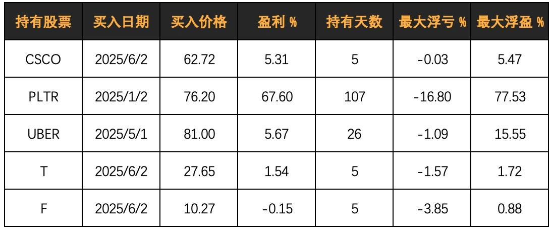 在该策略下,目前持有的股票及相关信息如下: