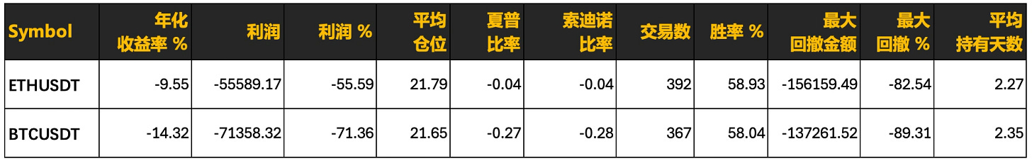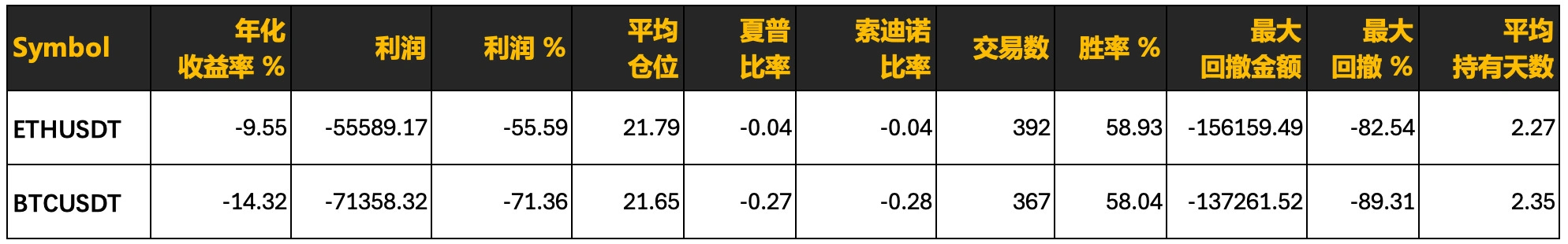 BTC 和 ETH 都没有出现在回测结果的前十名中,他们的实际结果是: