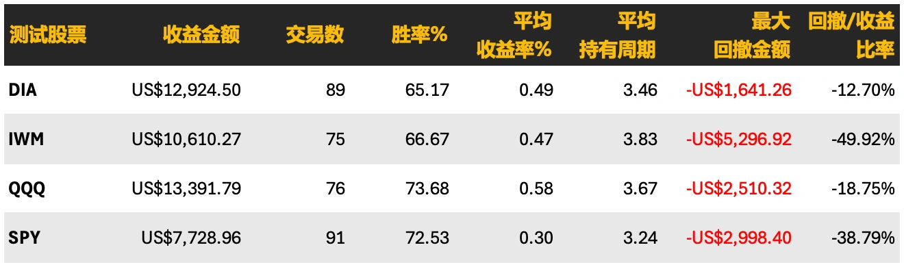 PS:无需关注具体回报的数值,因为这与仓位管理交易标的均有关系,此处我们仅关注策略的胜率表现。